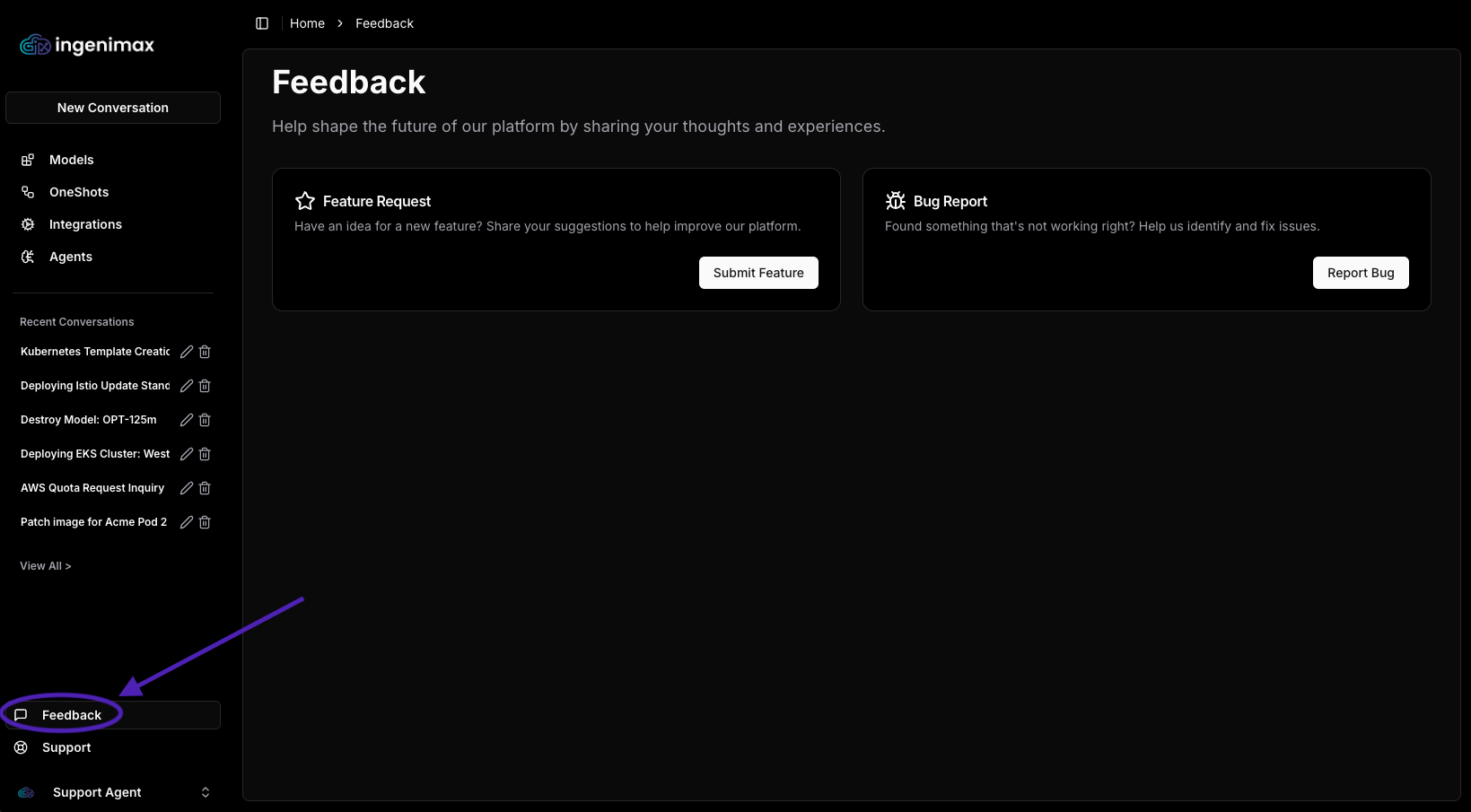Use the in product feedback feature found in the bottom left corner of StarOps
