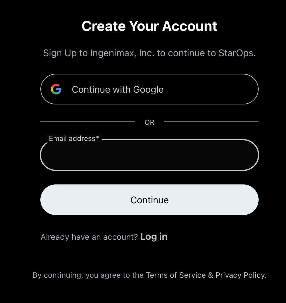 If you don't have an account, sign up for StarOps at StarOps Sign Up