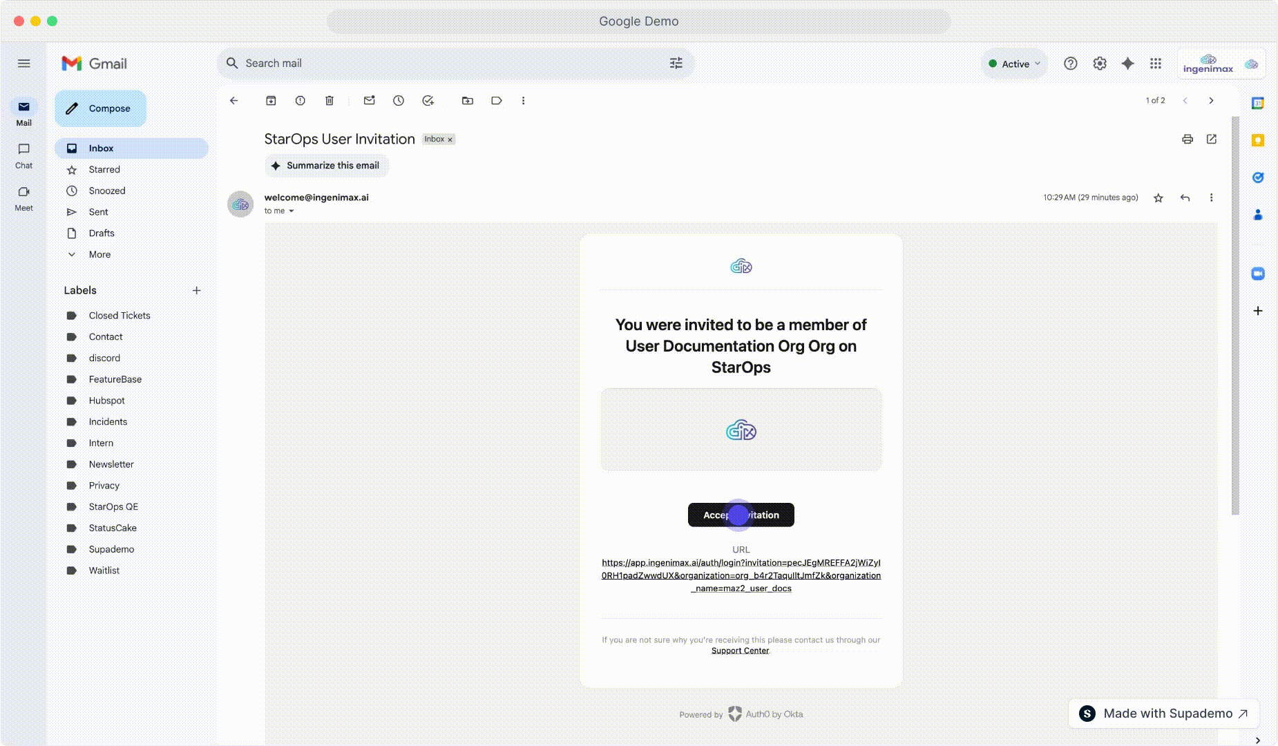 When sending an invitation there are two ways it can be accepted, either using Google SSO or creating an email password, examples of both are below: