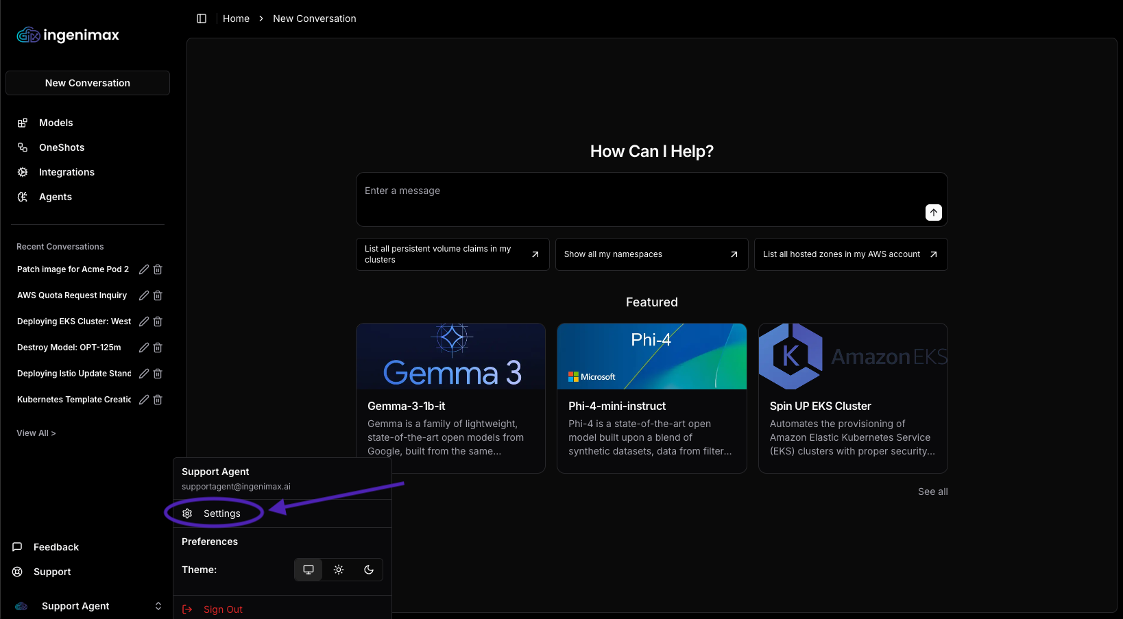 After clicking on your user name in the bottom left corner, select Settings to change any other user setting, this is also where you can delete your account.