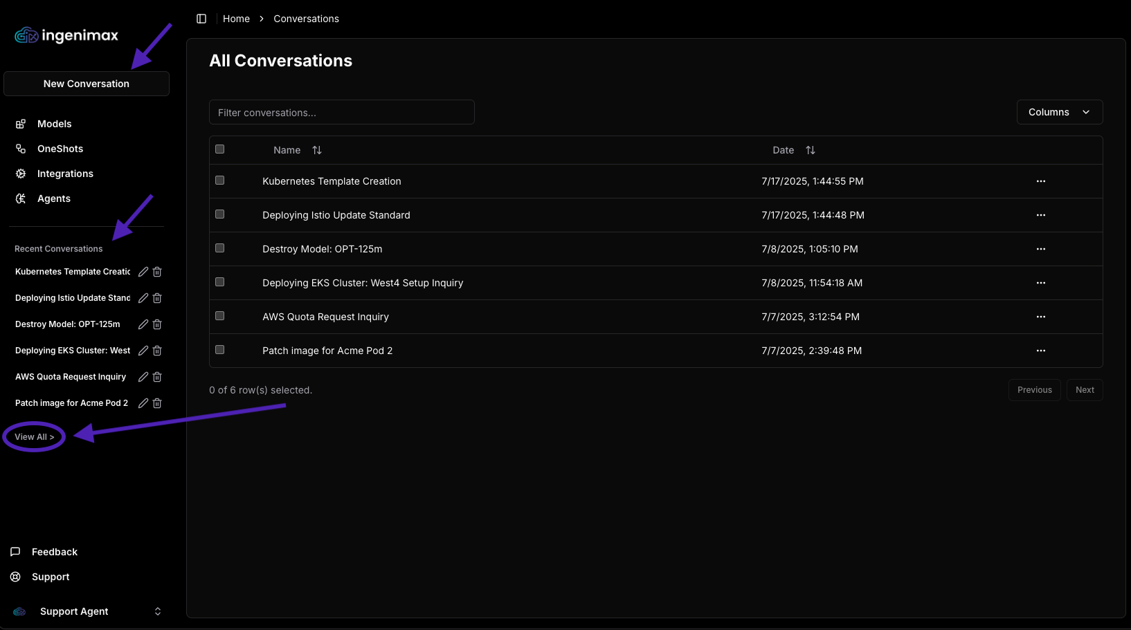 Each conversation in StarOps is assigned a name based on the task by the Agent; you can easily rename the conversation through the edit panel in the sidebar on the all tasks view. Your conversations can also be deleted, however, we recommend that you do not delete conversations about models that are currently deployed in your cloud as their history and assets can not be restored.